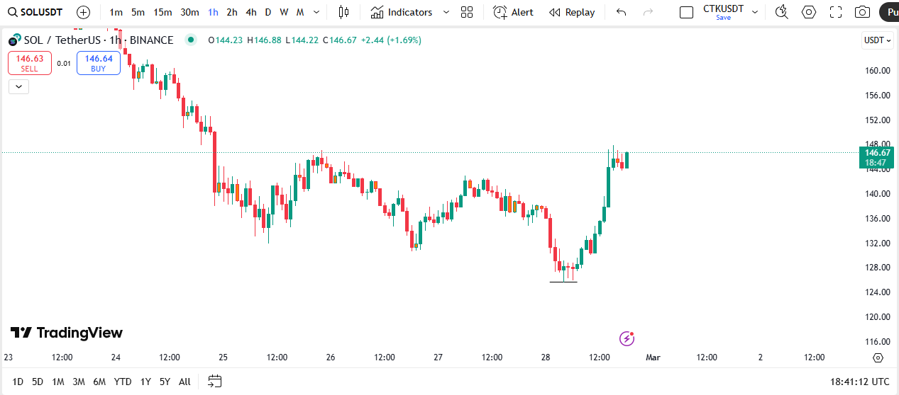 : Solana(Sol)为$ 125的支持水平辩护,并以144美元的价格弹跳。尽管市场情绪仍然摇摇欲坠,但鲸鱼买家正在返回,显示出信心的迹象。