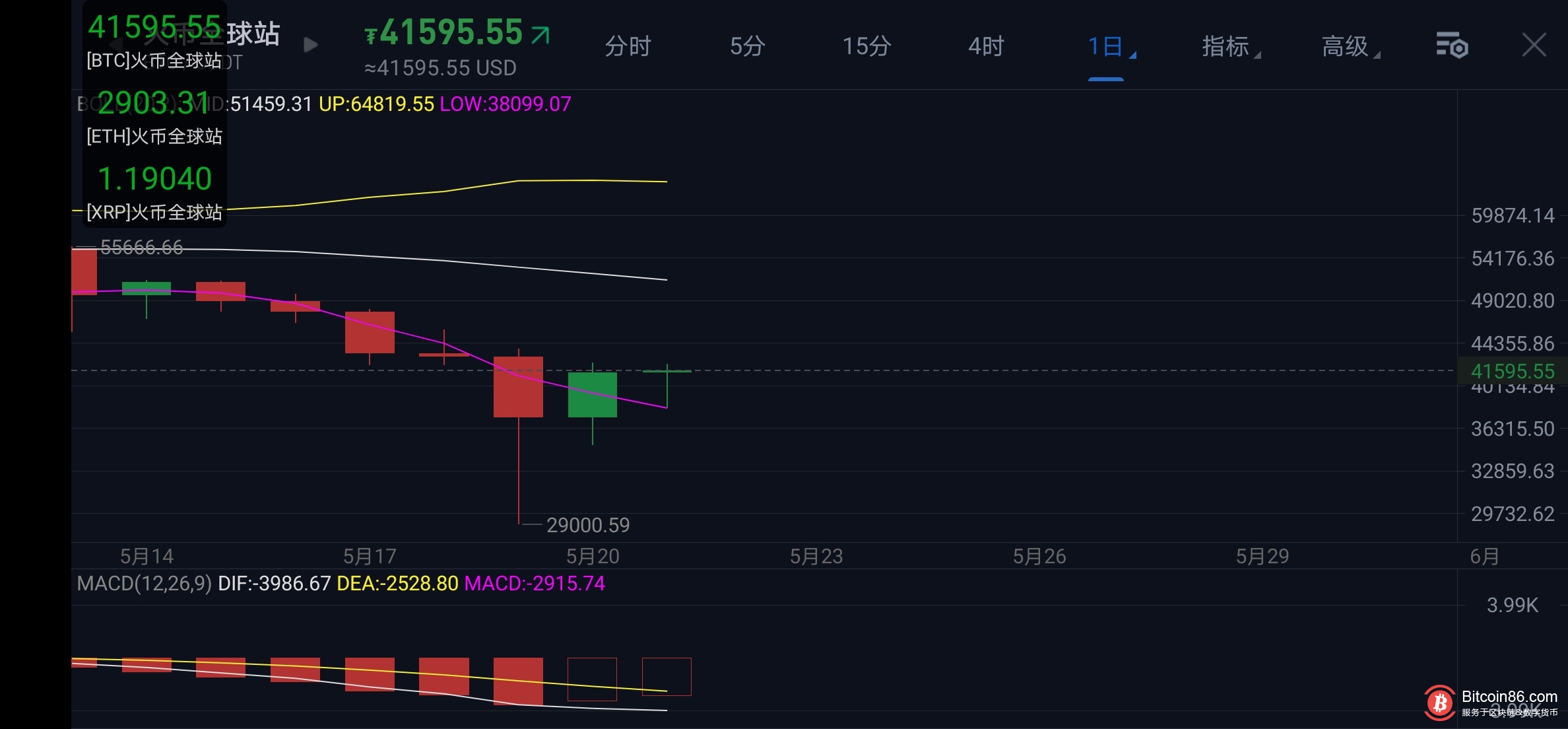 4小时暂时处于上涨整理状态。颇突破中轨的迹象,大跌过后必有大涨,当下需要的是时间,下探过后反弹依旧在4万上方,整体的盘面得到了修复,此时币价依旧处于多空临界点,上行是必然的,但暂时也不好猜顶。只能当作是下跌后的局部的震荡修正,多头单边目前还是未能走出,但可以看到整体在走稳步的上行过程,附图MACD指标多头在放量,能量柱也在放量。日内短线思路维持昨日的一致,依旧看多为主,依托昨日收盘价看多。
