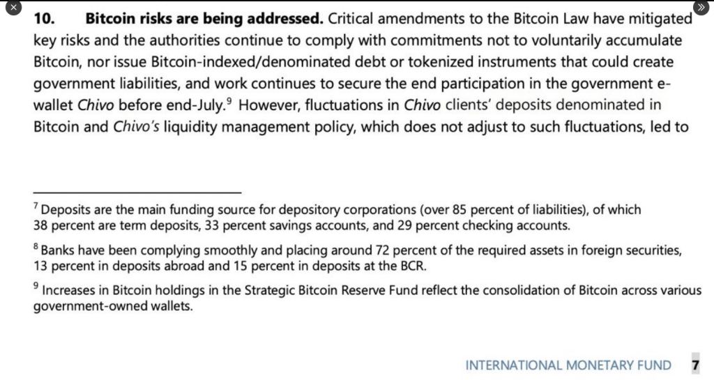 公开追踪数据甚至显示,比特币持有量已攀升至6,102枚比特币以上。然而,国际货币基金组织7月15日的第四条磋商报告称,自2024年12月批准14亿美元的中期贷款以来,没有新的购买。