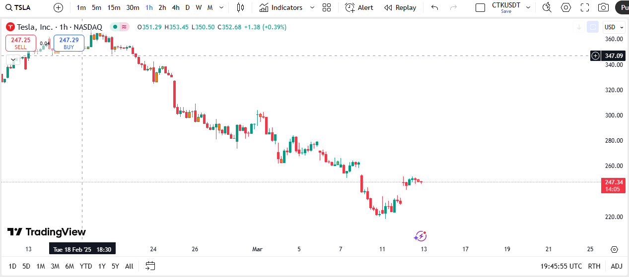 特斯拉的股票自十二月达到历史最高水平以来就下降了。这取消了特朗普在11月赢得选举后所取得的大部分收益。自周一下降15.4%以来,该股票上涨了10%。
