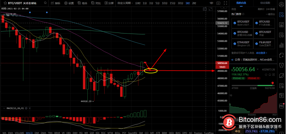 短节奏上重点关注下方均线支撑49000,若下行至其附近将会继续发起上攻,有可能再次回到53000~54000附近震荡。