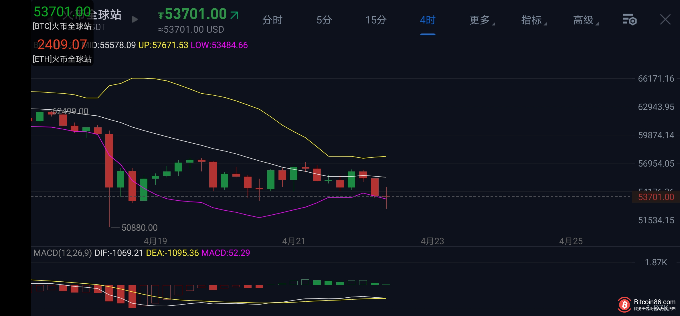 谈币先锋建议:54800~55000空单介入,目标看53000,防守55500。