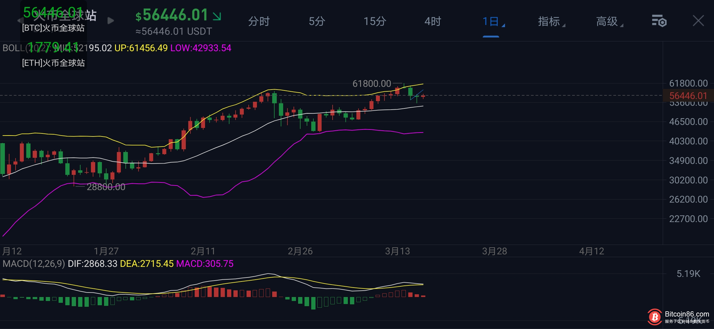 谈币先锋建议:回调至56000多单介入,防守55500,目标看57500。