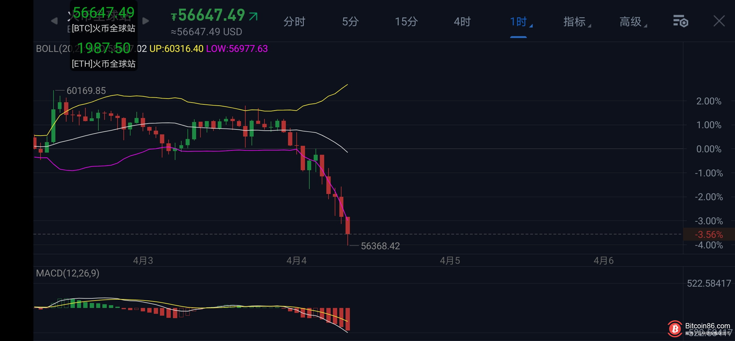 比特币昨日震荡许久后,凌晨还是发生下跌,冲击6万梦想已经破碎,而且下行力度还不算太小,这波承压回落,彻底清洗多头,日内操作上我们也要转换思路,开始跟上行情的步伐,逐步开始做空看空,从盘面上观察,此次回撤还在继续,远远没有结束!
